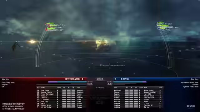 05:42:12DeSync besiegt Deteriorated durch einen mutigen und gut koordinierten Sprung-Drive Angriff, der es dem Team ermöglichte, tief in die feindliche Formation einzudringen und kritische Logistik- und Support-Schiffe auszuschalten. Diese taktische Meisterleistung zeigte, wie eine Kiting-Formation sich gegen eineArmor-Armada behaupten kann, wenn sie aktiv in die Range der Feinde vordringt. Die Experten analysieren zudem den ungewöhnlichen Einsatz eines Rüstungs-Barghasts in einer Armor-Flotte. Der Bonus für Scrambler-Range macht ihn zu einem einzigartigen Flagship, das Gegner in unmittelbare Reichweide fesseln kann, auch wenn die 50-Punkte-Kosten als hoch bewertet werden.