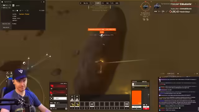 01:38:58Nachdem der Rift als unergiebig eingestuft wurde, beginnt der Streamer mit dem Abbau von Kohlenstoff, einer fundamentalen Ressource in Frontier. Er erwähnt, dass die Spielmechanik, das Crafting-System und die Schiffe sich grundlegend von EVE Online unterscheiden. Das gesamte Universum von Frontier wird als explorable beschrieben, wobei die Karte dreimal so groß wie die von EVE Online sein soll. Eine zentrale Neuerung ist das Fehlen von Sternentoren; stattdessen werden Sprünge zwischen Sternensystemen durch Sprungantriebe ermöglicht, die Treibstoff benötigen und sich nach Schiffsbeladung richten.