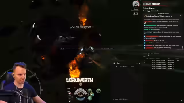 02:56:10Der Stream beginnt mit einem intensiven Kampf gegen Damovics und einen Vedmak in einem Abyss-Raum. Das Ziel ist, mindestens einen Damovic zu eliminieren, bevor der Vedmak angegriffen wird. Es kommt zu gefährlichen Manövern, um den Feinden auszuweichen, und der Spieler überhitzt seine Triebwerke, um Entfernung zu gewinnen. Der Vedmak stellt durch seine hohe Geschwindigkeit und Electronic Warfare eine ernste Bedrohung dar, die eine weite Umlaufbahn und konstante Reparaturen der Schiffssysteme erfordert.