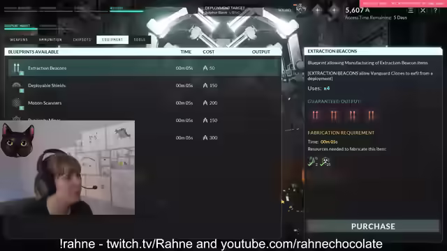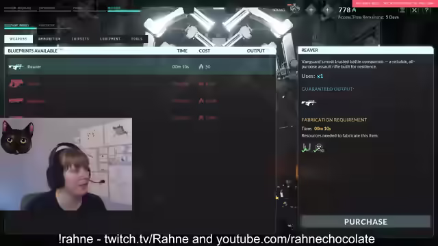 01:54:31Es wird überlegt, Empire- oder Piratenkontrakte anzunehmen, wobei die Wahl auf Piratenkontrakte und die Blood Raiders fällt. Es wird zurück nach Aftermath gegangen, wo sich die meisten anderen Spieler aufhalten. Die Streamerin bevorzugt die Backlash gegenüber der Lancer und überlegt, wie man an Backlash-Munition kommt. Sie stellt fest, dass man Munition einfach kaufen kann und fragt sich, wofür sie sonst ihr Geld ausgeben sollte. Es wird festgestellt, dass es sich bei Vanguard um Black Air Force Energies handelt. Die Streamerin kauft Munition und behält den Blueprint. Es wird angemerkt, dass das Spiel an Dust 504 erinnert und vom selben Entwicklerteam stammt.