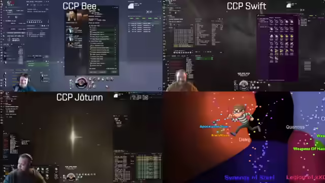 Das CCP-Team erlebt in EVE Online intensive Gefechte im ESS-System, unterstützt durch Pandas Flotte. Nach dem Bergen von Beute, inklusive wertvoller Abyssal Points, planen sie weitere Einsätze. Ein Podcast zu Patchnotes wird erwähnt, während sie Taktiken zur Übersicht in bevölkerten Systemen diskutieren. Wormhole-Aktivitäten und PvP-Aktionen runden das Geschehen ab.