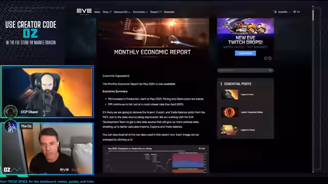 01:06:59Der Stream beginnt mit der Vorstellung des Gastes, ein EVE-Spieler und CSM-Mitglied, der mit CCP Okami über den monatlichen Wirtschaftsbericht spricht. Er stellt den Oz Report vor, eine wöchentliche 10-15-minütige Podcast- und YouTube-Serie, die einen schnellen Überblick über die EVE-Wirtschaft gibt und sich mit Themen wie Plex-Preisen und Schiffstrends befasst. Er betont seine Rolle als Verfechter von Steuern und kündigt an, seine Analysewerkzeuge und Dashboards vorzustellen, die ihm ermöglichen, die wirtschaftlichen Feinheiten von EVE Online zu verstehen.