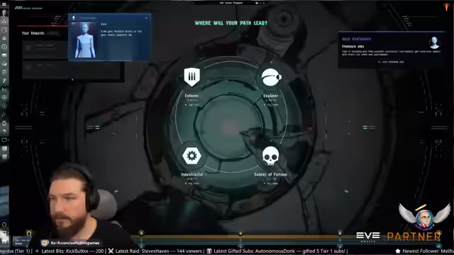 00:03:54Der Stream beginnt mit einer visuell beeindruckenden Szene, bei der die Startstation explodiert und Wrackteile im Weltall umherfliegen. Der Spieler befindet sich in seiner Kapsel, wird von der KI Aura durch das Tutorial geleitet. Aura berichtet, dass das Klonzentrum vor der Evakuierung attackiert wurde. Nach einer kurzen Interaktion mit Zuschauern steuert der Spieler ein Schiff an, um es zu betreten und das Tutorial fortzusetzen.