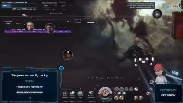 05:39:44Die Runde beginnt mit einem Preisgeld von 200 Millionen ISK. Der Streamer startet das Spiel, und die Teilnehmer springen ins Spiel. Es wird erklärt, dass es strategische Elemente gibt, da ein Schild generiert werden kann, der an ein Schiff gebunden werden muss, um nach zehn Minuten Loot zu droppen. Falls während dieser Zeit niemand den Schild zerstört, erhalten die Spieler den Loot. Der Gewinner der Runde, Anna, erhält die 200 Millionen ISK als Preis.