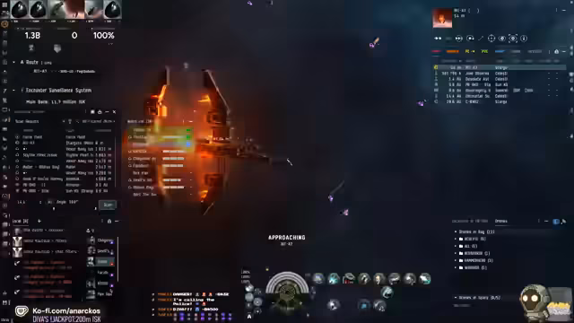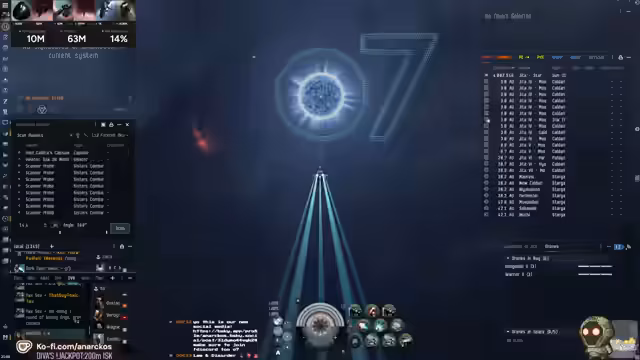 01:37:48Die Flotte setzt ihre Jagd fort und springt zu verschiedenen Gates, wobei sie stets auf der Hut vor Bomben und neuen Feinden ist. Es kommt zu weiteren Gefechten, bei denen Manticore-Bomber ausgeschaltet werden und die Flotte sich neu formiert, um auf die sich ändernde Bedrohungslage zu reagieren. Der Streamer gibt Anweisungen, wie man sich in der Nähe von Gates verhalten soll, um nicht unnötig durch Bomben Schaden zu nehmen. Es wird versucht, einen Sinotap anzulocken, indem man eine Flucht vortäuscht. Die Flotte springt erneut und hält sich zunächst bedeckt, um die Lage zu sondieren. Es wird festgestellt, dass eine Kronos und eine Caracal an einem Gate warten. Die Flotte springt erneut und hält sich zunächst bedeckt, um die Lage zu sondieren. Die Flotte springt erneut und hält sich zunächst bedeckt, um die Lage zu sondieren. Die Flotte springt erneut und hält sich zunächst bedeckt, um die Lage zu sondieren. Die Flotte springt erneut und hält sich zunächst bedeckt, um die Lage zu sondieren. Die Flotte springt erneut und hält sich zunächst bedeckt, um die Lage zu sondieren. Die Flotte springt erneut und hält sich zunächst bedeckt, um die Lage zu sondieren. Die Flotte springt erneut und hält sich zunächst bedeckt, um die Lage zu sondieren.