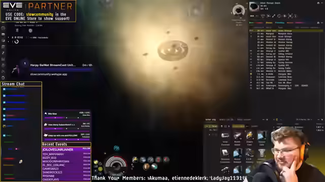 00:03:57Der Stream beginnt mit der Begrüßung der Zuschauer und einer persönlichen Vorstellung des Streamers. Es werden Geburtstags- und Vaterfreuden angekündigt. Der Streamer führt sich als Mitglied der Slow Children at Play-Allianz vor und gibt Einblicke in seine Merchandise-Artikel, darum bemalte 3D-Modelle von EVE-Schiffen. Wichtig für die Zuschauer ist die Ankündigung exklusiver Galnet Stream Skins, die als Belohnung für das Anschauen von CCP-Streams vergeben werden, sowie die Erklärung der Streamzeiten auf dem eigenen Kanal.