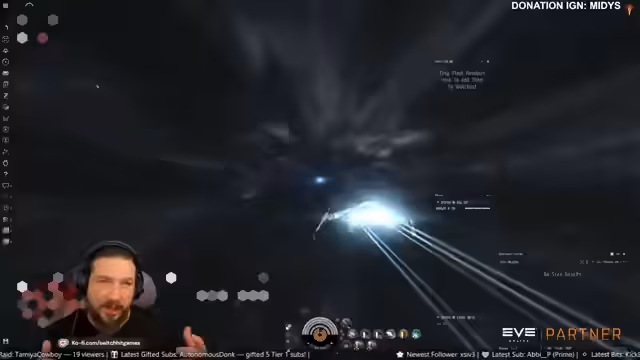 00:05:54Der Stream startet mit der Begrüßung der Zuschauer durch Switchhitgames, der als Gast auf dem CCP-Kanal streamt. Der 17. Januar wird erwähnt, und es wird angekündigt, dass der Fokus auf Solo Roaming in EVE Online liegen wird. Kurz darauf beginnt das Gameplay, bei dem nach Schiffen wie Ishtar und Gila gesucht wird. Ein erster Kampf gegen einen Ishtar wird eingegangen, der jedoch schnell mit dem Tod des eigenen Schiffes endet. Trotz des Verlustes wird der Kampf als gut bezeichnet und der Community für die Interaktion gedankt.