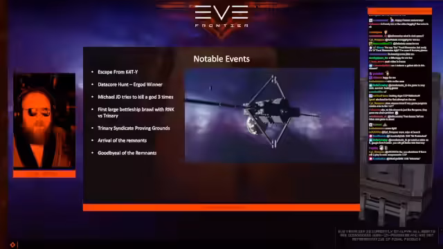 00:06:57CCP Yoten hosts the Cycle 1 wrap-up, marking the end of the first development cycle of EVE Frontier, which began with Founder Access in December and is set to conclude the following week. The initial days of Cycle 1 presented a unique challenge as some riders found themselves stranded in the K4T-Dak-Y region due to jump drive limitations, leading to the formation of a community that embraced their confinement and even capitalized on the situation by selling necessary materials at inflated prices. A data core hunt was organized over the holiday break, scattering 20 encrypted data cores across the Frontier, with a significant prize awaiting the winner. The emergence of the Feral Moon Eater, the largest NPC to date, led to three unsuccessful attempts to defeat it. Additionally, the cycle featured the first large battleship brawl between Karuda-class and Gruus-class battleships, followed by the Trinary Syndicate Proving Grounds, a player-organized PvP event showcasing the dynamic gameplay of Frontier using occlusion mechanics and increased tick rates. The arrival of Remnant riders, who joined during the free access period in February, provided valuable feedback and engagement, contributing to the co-development approach where players actively participate in shaping the game.