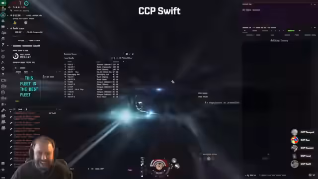 01:21:23Der Streamer gerät in gefährliche Situationen, als er in eine Gatecamp gerät und versucht zu entkommen. Er äußert Frustration über leere Ratten-NPCs und kommentiert seinen Weg durch verschiedene Systeme. Obwohl er mehrmals angegriffen wird, gelingt es ihm, durch geschickte Manöver und das Nutzen von Raumschiff-Fähigkeiten zu überleben, indem er sich schnell bewegt und strategisch zurückzieht. Die Spannung steigt, als mehrere Gegner ihn verfolgen.