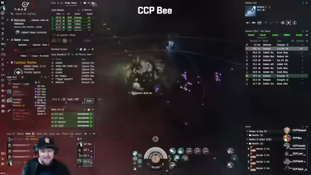 01:31:54In einem System mit 30 Local-Einwohnern kommt es zu einem massiven Kampf, nachdem Gegner die Flotte angegriffen haben. Die Flotte zieht sich zurück, wird jedoch umzingelt. Es folgt ein chaotischer Nahkampf, bei dem die Gegner systematisch bekämpft werden. Obwohl einige Schiffe der Flotte zerstört werden, kämpft sich der Rest des Trupps heraus und wechselt den Standort.
