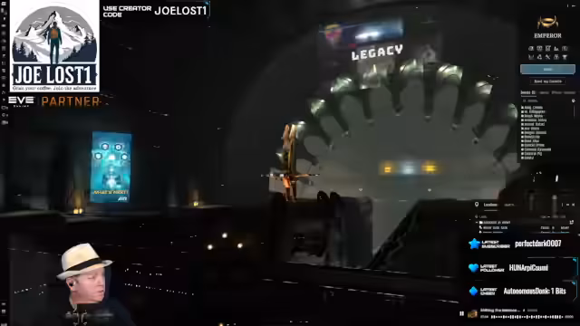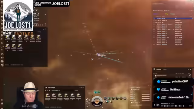 00:32:42Der Streamer startet den Jump-Freigner Transport. Der Pilot des Jump-Frachters, Jose, wird mit dem Piloten des Signatur-Generators, Joe, zu einer Flotte hinzugefügt. Nachdem Jose aus dem Dockingring einer Station ausgefahren ist, setzt Joe den Signaturgenerator, was einen Jump-Point für Jose erzeugt. Jose nutzt diesen, um einen Warp durch den Raum zu machen, während Joe für 10 Minuten an seinem Position fixiert und angreifbar ist. Der Streamer betont, dass dies ein gefährlicher Vorgang ist und strategisches Know-how erfordert.