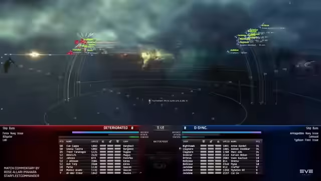06:04:21Das erste Match endet mit einem dramatischen Sieg für Evasive Maneuvering. Trotz eines aggressiven Drucks von Meta Reloaded, dessen Dominix-Schiffe in Hull gehen, gelingt es den Leshak-Piloten, in letzter Sekunde das gegnerische Flaggschiff zu zerstören. Das Match war ein Nervenkitzel und zeigte die hohe Präzision der Drohnen-Micro-Management von Evasive. Der Sieg gibt ihnen einen entscheidenden 1-0-Vorsprung in der Serie und sichert ihnen den Verbleib im Turnier, während Meta Reloaded nun alles riskieren muss, um zurückzukommen.