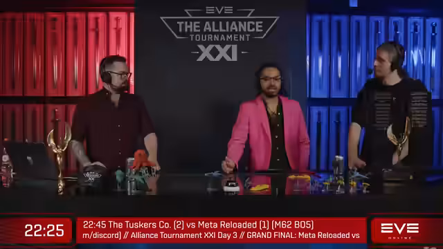 08:12:23Nach dem ersten Grand-Finals-Match wurde das komplexe Regelwerk des "Reverse Tie-Die" zur Erklärung des Spielverlaufs herangezogen. Diese spezielle Regel des Alliance Tournament tritt in Kraft, wenn innerhalb der regulären Matchzeit kein Schiff zerstört wird. Das Spiel wird dann in einen beschleunigten Modus versetzt, bei dem die Zeit um 150% schneller abläuft. Alle Schiffe bewegen sich schneller, alle Module haben kürzere Zykluszeiten und das gesamte Geschehen wird schneller. Das Team, das in dieser beschleunigten Phase die meisten Schiffe zerstört oder den meisten Schaden verursacht, gewinnt das Match. Dies führte dazu, dass Meta Reloaded trotz der komplexen Golem-Strategie am Ende verlor, da die Tuskers die Geschwindigkeit des Spiels besser kontrollieren und ausnutzen konnten.