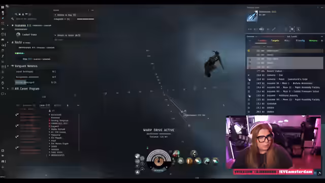 00:17:00Der Hauptinhalt des Streams ist die Teilnahme am Vanguard-Nemesis-Event in EVE Online. Amiomia, die nach einer Urlaubszeit neu im Spiel ist, versucht gemeinsam mit ihrem Chat, feindliche Squalls zu finden und zu bekämpfen. Sie übt das Scannen von Schiffen und nutzt den D-Scan, was für sie eine Neuerung ist. Aufgrund des hohen Andrangs ist es schwierig, an den Kämpfen teilzunehmen und die notwendigen Punkte zu sammeln.