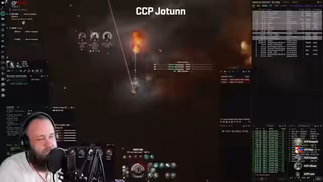 01:40:03Ein 'Devoter' spawnt, was die Gruppe in Alarmbereitschaft versetzt. Es wird über das Verbrennen zum Devoter und die Notwendigkeit der Flucht diskutiert. Ein Mitglied der Gruppe wird von ECs unterstützt, während andere versuchen, Schaden zu verursachen. Es wird über die Möglichkeit eines Signers diskutiert und die Reichweite für Lynx erfragt. Die Gruppe gerät in Schwierigkeiten, als sie in seltsamen Blasen gefangen wird. Es kommt zu chaotischen Szenen, in denen Mitglieder um Hilfe rufen und versuchen, sich zu retten. Trotz der widrigen Umstände gelingt es der Gruppe, den Devoter zu verlangsamen und zu behindern. Es wird über das Abwerfen von Drohnen und das Jammen von Gegnern gesprochen. Die Gruppe ist hin- und hergerissen zwischen dem Angriff auf den Devoter und der Rettung ihrer eigenen Schiffe. Es kommt zu hitzigen Diskussionen über die beste Vorgehensweise und die Priorisierung von Zielen. Trotz der Verluste und des erlittenen Schadens gibt die Gruppe nicht auf und kämpft weiter. Ein Mitglied opfert sich, um den Kill zu sichern, während ein anderes als Feigling beschimpft wird, weil es geflohen ist.