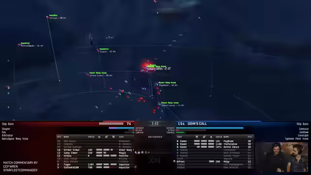 02:27:17Die Schlacht eskalierte schnell als der Flag-Balgorn von Barcode unter konzentriertem Torpedo-Feuer der Navy Ravens zusammenbrach. Der Verlust des Flagships war ein schwerer Schlag, da es nicht nur viele Punkte kostete, sondern auch eine zentrale Kontroll- und Logistikeinheit darstellte. Mit dem Flag-Balgorn gefallen, verlor Barcode einen Großteil seiner strategischen Überlegenheit. Odin's Call konzentrierte sich nun auf die verbleibenden Schiffe, insbesondere einen Navy Dominix, und nutzte ihre verbleibenden Schiffe wie die Kitsune für elektronische Kriegsführung. Obwohl Barcode noch versuchte, das Blatt zu wenden, reichte der Schaden und der Punktabstand nicht aus, sodass Odin's Call das Match mit 136 Punkten für sich entscheiden konnte.