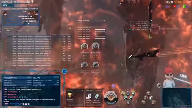 02:39:57Während des Hauptspiels stellt der Streamer fest, dass die Radial Menü-Funktion im Spiel aufgrund von technischen Problemen mit der Push-to-Talk-Software nicht funktioniert. Dies beeinträchtigt die Steuerung des Schiffes. Trotzdem konzentriert er sich auf den Kampf, indem er auf Angriffe mit Tracking-Türmen und Drones reagiert. Er versucht, die Schäden zu minimieren und eine erfolgreiche Flucht aus einer kritischen Situation zu organisieren, während die Schadensbegrenzung durch Überhitzen der Waffen eine zentrale Rolle spielt.