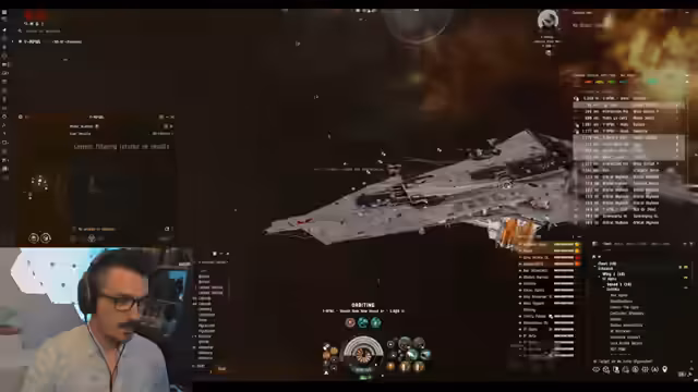 00:44:31Die Flotte bereitet sich darauf vor, zum D6-Gate zu springen. Ein Ferox wird gesichtet und die Flotte nimmt die Verfolgung auf. Der Ferox wird angegriffen und zerstört. Der Streamer bedankt sich bei einem Spieler für die Teilnahme. Die Flotte springt weiter und es wird ein Triple Expanded Cargo Hold entdeckt, was für Erheiterung sorgt. Es wird überlegt, ob ein Merc Den angegriffen werden soll. Die Flotte kehrt nach YTechM zurück, um die Gegner weiter zu ärgern. Es wird angemerkt, dass viele Leute im Discord der Gegner online sind, aber keine Reaktion erfolgt. Die Flotte wartet auf weitere Anweisungen und springt dann zu einer Athador-Struktur, um diese anzugreifen. Der Beschuss der Struktur beginnt und der Streamer sorgt dafür, dass alle auf dem Laufenden bleiben. Die Flotte soll das Ziel beschießen.