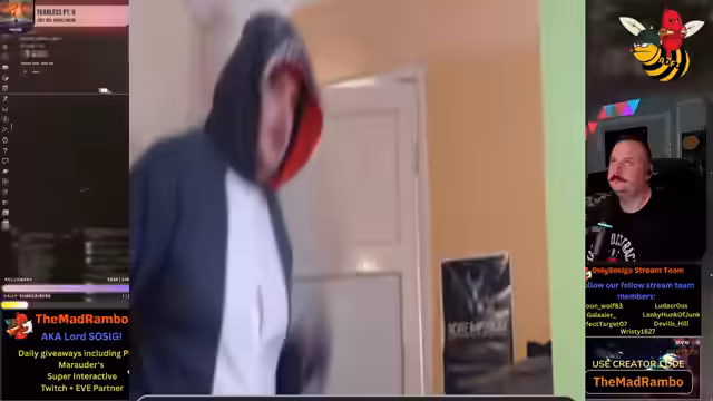00:02:37Der Streamer Lord Sosig, auch bekannt als The Mad Rambo, begrüßt das Publikum und stellt sich vor. Er erwähnt, dass es ihm sehr warm ist und er sich auf die Jagd nach Erkenntnissen in EVE Online konzentrieren möchte. Der Streamer interagiert intensiv mit dem Chat, beantwortet Grußbotschaften und kündigt an, dass er Giveaways durchführen wird, bei denen man den Keyword 'Sausage' eingeben kann, um Partner-Skins zu gewinnen.