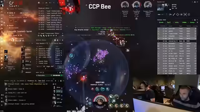 01:01:15Ein Dictor nähert sich, und die Flotte bereitet sich darauf vor, ihn zu fangen. Die Carrier können MJD verwenden, um näher zu kommen. CSP Paragard wird angewiesen, sich dem Overlord zu nähern, um bei Bedarf MJD zu verwenden. Die Spieler werden angewiesen, sich auszurichten, und Paragon wird angewiesen, zuerst zu warpen, wenn die Blase verschwindet. Einige Spieler waren nicht ausgerichtet und wurden in einer Blase gefangen. Die Flotte springt auf Kontakt, und es wird bestätigt, dass sich alle im Warp befinden. Die Flotte erreicht das Zielgate, und es wird festgestellt, dass sich Feinde auf das Gate ausrichten. Die Spieler werden angewiesen, den Heretic anzugreifen, der ausgestrahlt wird. Freies Feuer wird auf alle eröffnet, die landen, einschließlich eines Odin's Bifrost. Ein Nemesis erhält einen Cloak, und ein Hick-Bubble wird hochgezogen. Die lokale Anzahl steigt, und die Flotte bereitet sich darauf vor, direkt dort zu kämpfen. Jeder soll sich verankern und die Prop-Mods einschalten. Paragon hat Pech, aber die Flotte ist verankert. Es wird festgestellt, dass ein Shuttle aus einem Jump Bridge kommt, was den Verdacht auf ein Inside Job erweckt.