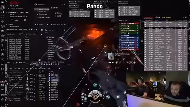 00:52:46Die Flotte navigiert durch das All, wobei Pando das Ziel vorgibt. Goons sind in der Nähe, aber die Flotte bewegt sich langsam, um nicht zu weit zu gehen. Ein ursprüngliches Ziel, ULX, wäre 19 Sprünge entfernt, aber es wird vermutet, dass die Gegner bereits Fallen stellen. Die Carrier sind eingetroffen, und es wird diskutiert, ob sie auf das Gate springen sollen. Die Spieler werden angewiesen, den kürzesten Weg zu nehmen, da es sich um ein LAN-Setup handelt und keine Jump Bridges vorhanden sind. Ein neues Ziel, ERV, wird festgelegt, und die Flotte warpt zum 2-T-Gate. Es wird erwartet, dass die provisorischen Kräfte zum Kampf erscheinen werden. Die Flotte bereitet sich darauf vor, das Ansiblex zu zerstören, und die Spieler werden angewiesen, auf Kontakt zu springen und sich am nächsten Gate auszurichten. Pando erinnert sich an einen früheren Remote-Reparatur-Einsatz mit einem erstaunlichen Kampf gegen Brave, aber mit weniger Remote-Reparatur-Schiffen. Die Spieler werden angewiesen, zusammenzubleiben und sich nicht vom Anker zu entfernen. Neulinge können Pando zur Beobachtungsliste hinzufügen, um nicht verloren zu gehen.