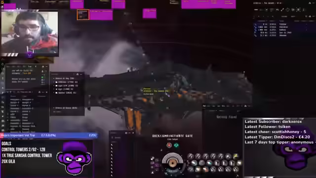 04:25:55Nach dem Demonstrieren der Software navigiert der Streamer mit seinen Alts durch einen Wormhole. Er erwähnt, dass es praktisch unmöglich ist, alle seine Charaktere gleichzeitig einzuloggen, da sein Computer das nicht verkraften würde. Er versucht, eine Löschung für einen Leshat zu organisieren, muss den Plan aber fallen lassen, als er feststellt, dass sich zu viele Feinde in einer Citadel versammelt haben.