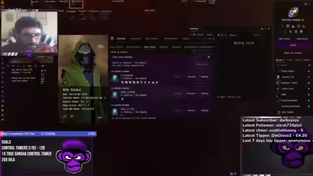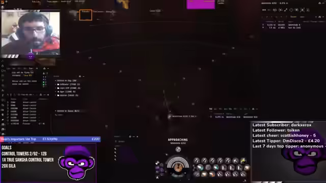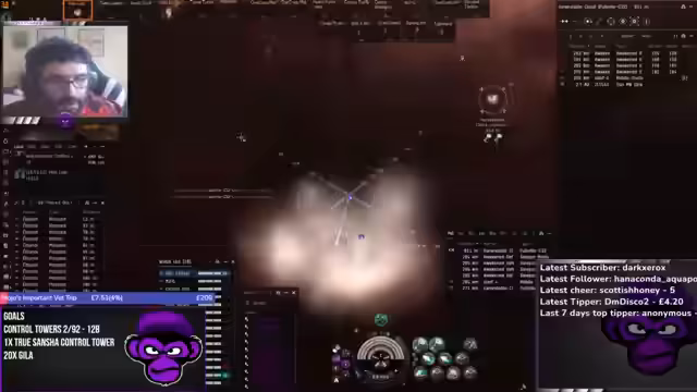 00:03:58Der Streamer, @OneCrazyMonkeh, startet den Stream und stellt sich als erfahrener Multiboxer mit bis zu 20 Konten vor. Er befindet sich in einem C4-Wormhole mit C5- und C3-Statics. Er gibt einen kurzen Einblick in seine Technologie, darunter die Nutzung von EvEX Preview und einem MMO-Mouse für die Steuerung seiner zahlreichen Charaktere. Seine derzeitige Fleet-Konfiguration besteht aus Bombern, und er erwähnt, dass er hauptsächlich durch Gassammeln Einnahmen erzielt, was er später detaillierter erklären möchte.