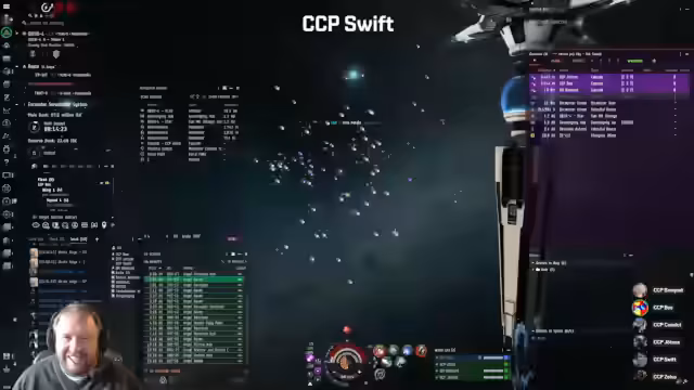 01:39:40Das Team konzentriert sich auf die Jagd nach Bergbauschiffe in einem System. Massive lokale Zunahmen deuten auf eine große Ansammlung von Gegnern hin. Das Team beginnt gezielt nach Stabbern und Hulks zu suchen, die sich in der Region befinden. Ein erfolgreiches Auftreffen führt zu einem koordinierten Angriff auf mehrere Gegner gleichzeitig.