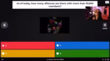 00:36:12Das Quiz beginnt, und die erste Frage lautet nach dem Namen der ersten Erweiterung von EVE Online, die korrekte Antwort ist 'Catalyst'. Schon früh zeigt sich eine Unstimmigkeit bei der Frage nach den Autoren der EVE-Bücher 'Empyrean Age' und 'Templar I', da die angezeigten Antworten laut Chat fehlerhaft sind. Bei der Frage nach der Anzahl der Allianzen mit über 10.000 Mitgliedern kommt es zu einer Kontroverse, da die angezeigten Daten veraltet sind. Dies führt zu einer Diskussion über die Genauigkeit von Statistiken und wie diese in EVE ermittelt werden.