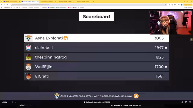 01:21:23Nach 25 Fragen geht Asha "Explorati" mit 3062 Punkten als Sieger hervor, gefolgt von Elkraft auf dem zweiten Platz. Die Platzierungen wurden nicht nur von der Korrektheit, sondern auch von der Geschwindigkeit der Antworten bestimmt. Die Sieger erhalten 500 Millionen ISK, während der Rest Teilnehmer EVE-Partner Skins gewinnen können. Ein technisches Problem mit einem Drucker wird thematisiert.