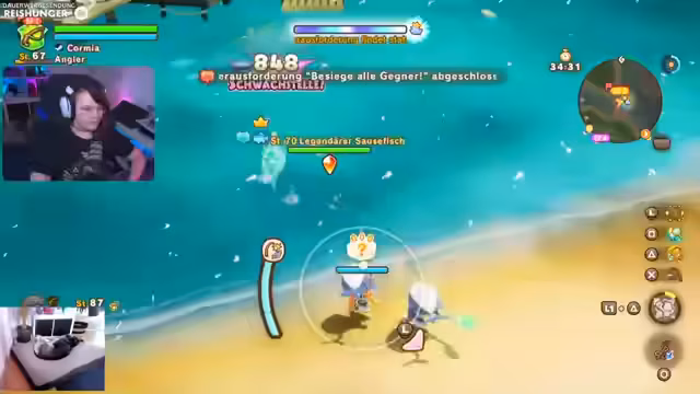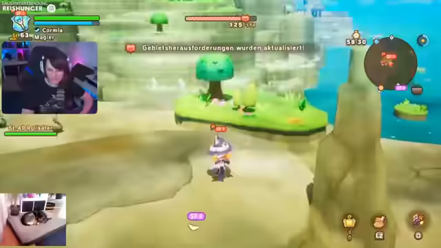 04:57:39Zu Beginn des Streamsabschnitts erwähnt der Streamer seine langjährige Erfahrung mit Katzen und wie er sich Erholung vom Arbeitsalltag wünscht. Beim Gameplay von Fantasy Life: A World of Happiness, genauer Gigantien, geht es um das Zusammenspiel im Team. Der Spieler fehlt und man muss die Ausdauer der Gegner im Auge behalten, da ein gemeinsames Zurücksetzen die Aufgabe neustartet. Es wird eine klare Taktik entwickelt, bei der die Spieler abwechselnd im Kampf bleiben, um ein Resettum zu verhindern.