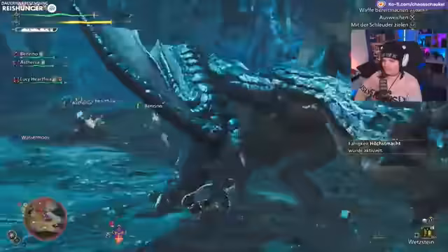 04:30:00Nach mehreren Versuchen analysiert das Team die Mechaniken von Omega, insbesondere die Laser-Attacken und die Phasenwechsel. Es folgen Diskussionen über Waffenwechsel (z. B. auf Axt für höheren Schaden) und Buff-Management. Der Streamer erwähnt auch DLC-Pläne für Monster Hunter Wilds, während sie weitere Kämpfe gegen Omega versuchen und dabei häufig sterben, aber die Motivation beibehalten.