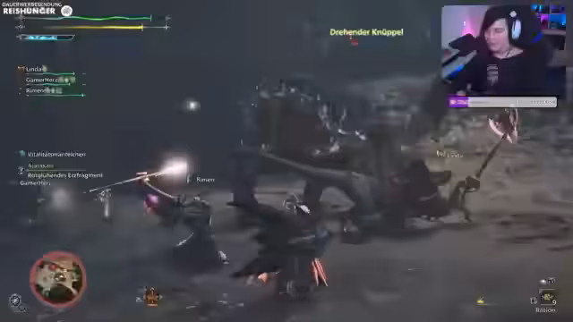 04:55:49Die Streamerin fragt den Chat, wo man Violstein bekommt, da sie dazu nichts findet. Sie vermutet, dass man ihn in den Ruinen findet, ist sich aber nicht sicher, ob man ihn abbauen oder von gehärteten Monstern bekommt. Sie erwähnt, dass sie schlecht darin ist, sich Ressourcennamen zu merken. Sie erzählt von ihrer Suche nach den Gaius, die sich als Fische zum Angeln herausstellten. Sie versucht, Waffen zu wechseln, und stellt fest, dass sie mit Controller spielt. Sie gratuliert Winnie zu einer Goldkrone Gormagala und bietet an, nach der Quest zu helfen. Sie vermutet, dass sie das letzte Mal auch ein paar Goldgrünchen mitgenommen haben, wenn jemand gerufen hat. Sie springt von einer kleinen Sanddüne herunter und verschlürft kurz etwas. Sie erinnert sich an anstrengende Kunden in einer früheren Firma und erzählt von der geplanten Einführung von iPads für die Verkäufer, was für viele ältere Mitarbeiterinnen ein Problem gewesen wäre. Sie lootet einen Doshaguma und wird fast von einem anderen getötet. Sie stellt sich vor, wie es wäre, wenn die Welt aus Monstern bestehen würde und man sich mit dem Lebenslauf "Getötet von einem Shoguma" bewerben müsste. Sie wünscht sich alte Monster wie Ludwurfs, Kurupeko, Pukepuke und Palomo zurück und hat nichts gegen eine Mischung aus alten und neuen Monstern.