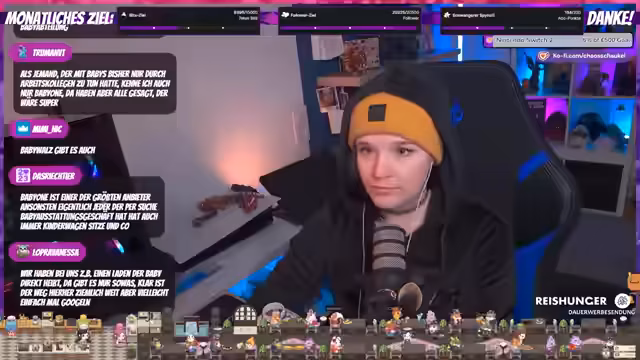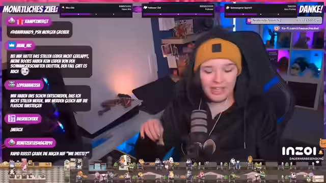 00:13:37Der Stream beginnt mit einem lockeren Start, bei dem Streamer die Zuschauer begrüßt und den Energielevel des Streams als „Schaukel Party Dragon“ beschreibt. Zunächst berichtet sie über ihre Müdigkeit, die trotz eines frühen Aufstehens besteht, und spricht über persönliche Erlebnisse aus dem Alltag, unter anderem über Begegnungen mit schwangeren Bekannten und die emotionalen Herausforderungen durch Hormone in der Schwangerschaft.