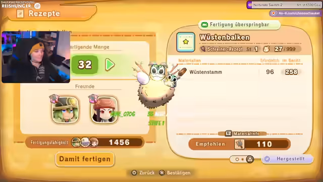 04:50:32Nach dem Crafting könnten Bäumchen gesammelt oder Gigantchen geöffnet werden, damit Zuschauer beitreten können. Der Streamer plant, Meister-Stufen für Berufe nachzucraften, um bessere Ausrüstung für den Abbau und die Aufnäher zu erhalten. Stat-Verstärkungen durch Aufnäher sind für das Spiel wichtig. Gleichzeitig muss mehr Silber für die Rüstungsfertigung ge farmt werden.