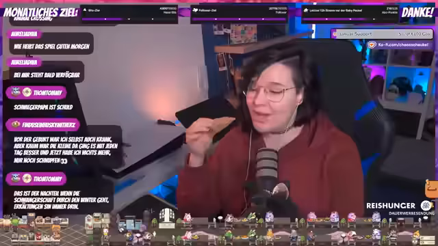 02:52:59Der Streamer wechselt zum Real-Life-Thema der bevorstehenden Geburt seines Babys. Er befindet sich im dritten Trimester und berichtet von den Bewegungen des Kindes. Er geht auf die bevorstehenden Termine, wie den nächsten Hebammenbesuch und Ultraschall, ein. Diskutiert werden auch Baby-Ausstattungen wie das Stillkissen und die Milchpumpe, wobei Vor- und Nachteile verschiedener Modelle beleuchtet werden. Gleichzeitig klagt er über eine Erkältung, die ihn ansteckte, und die notwendigen Vorsichtsmaßnahmen für den Hebammenbesuch.