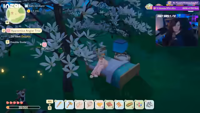 03:07:17Das Angeln wird als entspannendes und spaßiges Feature beschrieben, ohne nerviges Minigame. Der Streamer fängt Fische, um eine abzuschließende Quest zu erfüllen, in der er zehn Fische abgeben muss, und stellt fest, dass die meisten Fische keinen hohen Handelswert haben. Gleichzeitig erkundet er die Beziehungselemente im Spiel, indem er mit NPCs interagiert und über das System des Datens diskutiert. Er fragt die Community, ob es möglich ist, mehrere Charaktere gleichzeitig zu daten, wie es in anderen Spielen der Fall ist.