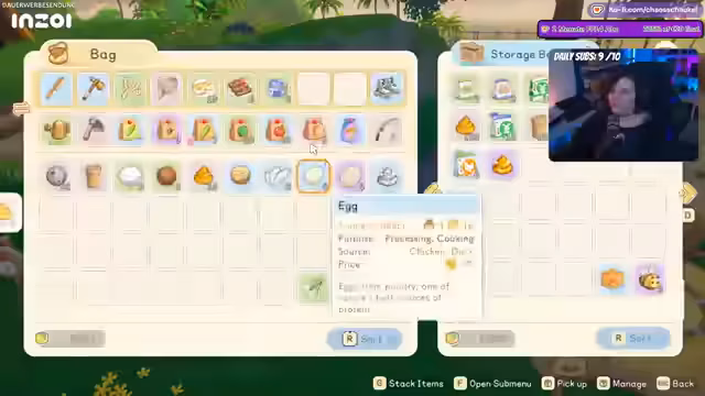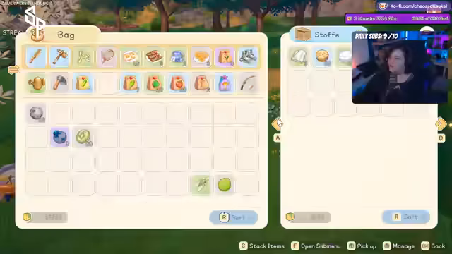 02:08:57Der Streamer konzentriert sich auf die Organisation seines Inventars und die Nutzung des Kisten-Systems im Spiel. Er farmt Ressourcen, craftet neue Werkzeuge und Kisten, um die Lagerkapazität zu erhöhen. Dabei entdeckt er die praktische Funktion, dass man von jedem Ort aus auf die Kisten zu Hause zugreifen kann, was die Farmarbeit erheblich vereinfacht und ihm ermöglicht, Platz im Inventar freizumachen, ohne ständig zum Bauernhof zurückkehren zu müssen.
