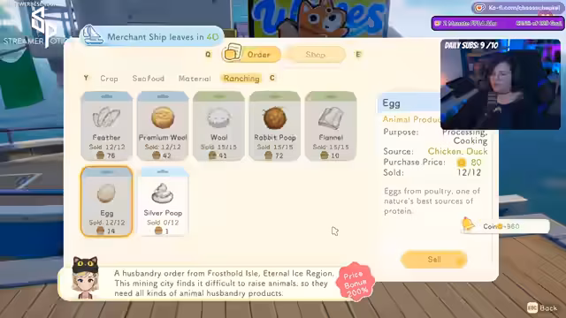 01:44:32Nachdem der Streamer in die Rückkehr ins Spiel einstimmt, berichtet er über die Errungenschaften des Vortages. Durch Angeln hat er eine verschmutzte Katze gefunden, die ihm eine Quest zur Errichtung eines Katzenbetts gegeben hat. Er zeigt neue Features, wie das Merchant-Schiff, auf dem man Aufträge annehmen und Waren für Bonus-Gold verkaufen kann. Auch die neuen Werkzeuge, wie ein Impact Hammer, werden präsentiert, die das Sammeln und Bauen erleichtern sollen. Für den nächsten Tag plant er, weiter zu angeln und Ressourcen im Wald zu sammeln.