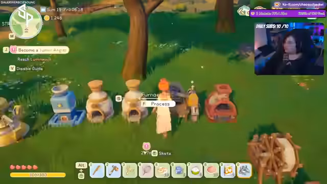 04:00:05Die Story-Quests werden ohne den bisherigen Kooperationspartner Sora fortgesetzt, da dieser die Motivation verloren hat. Sporadische Story-Streams sind geplant, aber es wird mehr Fokus auf Leveln und allgemeines Spielen gelegt. Eine neue Kooperation mit dem Management wurde angekündigt. Das Kochsystem wurde näher betrachtet, wobei es bisher nur eine Kochstelle gibt und keine speziellen Koch-Skills oder Minispiele. Das Spiel wird als sehr positiv überraschend und entspannend beschrieben, mit einem bauenhaften Inhalt, der auch nach 90 Stunden noch nicht zu Ende ist.
