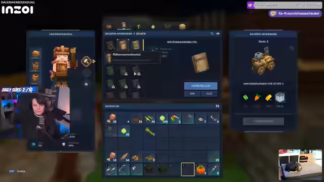 01:29:35Zu Beginn des Abschnitts widmet sich der Streamer der Verarbeitung und dem Management der gesammelten Ressourcen. Er untersucht Werkbänke und stellt fest, dass für bestimmte Upgrades spezielle Materialien wie Gerotten und Mais sowie eine große Lebensessenz benötigt werden. Der Fokus liegt darauf, alle verfügbaren Ressourcen wie Leder, Kristalle und Giftbeutel einzuschmelzen, bevor der Abenteuer fortgesetzt wird. Der Streamer diskutiert auch die Schwierigkeiten beim Pflanzen und Ernten, bemerkt, dass die Fertigstellung der Pflanzen nicht immer offensichtlich ist und erwähnt ein bevorstehendes Update, das beheben soll, dass Waffen versehentlich die Felder zerstören.