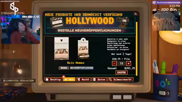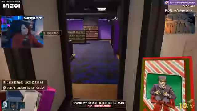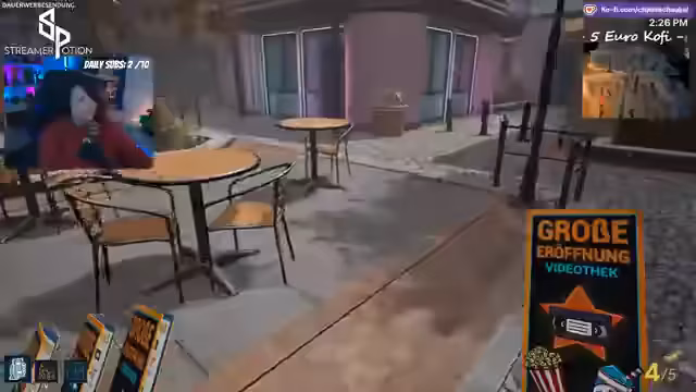 03:58:45Der Stream beginnt mit einer lockeren Atmosphäre, in der der Streamer sichtlich müde ist und über häufige Toilettengänge spricht. Dies führt zu einer humorvollen Auseinandersetzung mit der schauspielerischen Darstellung der Person im Spiel. Die Stimmung ist entspannt und der Streamer interagiert mit dem Chat über das Spielgeschehen, während er im Hintergrund Filme für seinen Laden sortiert und an Kunden verteilt.