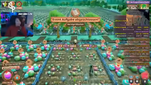 00:51:01Der Fokus liegt intensiv auf dem Bau und der Gestaltung einer Event-Farm in Farm Together 2. Die bestehende Farm wurde komplett abgerissen, um Platz für eine Neugestaltung zu schaffen. Das Ziel ist, eine Longlane Farm zu erstellen, um Events effizient zu farmen. Die Streamerin erklärt, warum dieser Farmtyp für Events am besten geeignet ist, da sie alle benötigten Gegenstände zentralisiert und von anderen Spielern besucht wird. Sie möchte besonders die Dekoration und das Eventmanagement optimieren und plant, auch zukünftige Events wie das Weihnachtsevent vollständig mitzunehmen.
