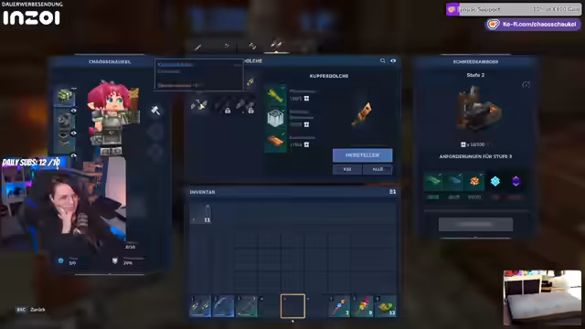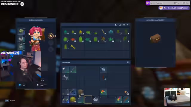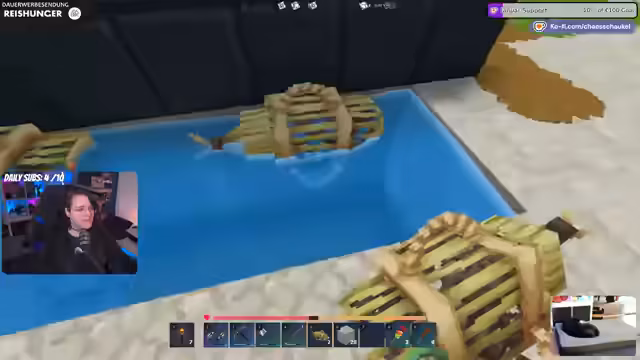 01:34:19Der Streamer beginnt mit dem Bau eines Fischbeckens, für den er Eimer craften und Wasser holen muss. Er stößt auf technische Schwierigkeiten, da das Wasser in den Tiefebene buggy ist und nicht wie gewünscht fließt. Auch das Platzieren von Fischreusen gestaltet sich kompliziert, da sie eine bestimmte Tiefe benötigen und Ressourcen wie Essenz des Leben kosten. Das Ziel ist ein natürlicher aussehender Teich statt eines modernen Swimmingpools. Zusätzlich gibt es technische Probleme mit dem eigenen Twitch-Account, der nicht gerettet werden kann, da die E-Mail-Adresse nicht geändert werden darf.