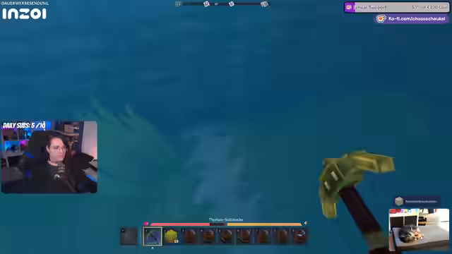 03:24:33Beim Gestalten des Fischtümpels stellt der Streamer fest, dass einige Blöcke, wie die Fischreusen, verbrauchsgebunden sind und nicht wieder abgebaut und platziert werden können. Das findet er schade, da sie trotzdem hübsch zur Dekoration taugen. Auch die Funktionsweise des Werkzeugs wird thematisiert: Eine Schaufel wird als weniger praktisch für den Abbau von Erde empfunden, da sie sich schnell abnutzt. Stattdessen wird die Spitzhacke favorisiert, auch wenn diese ebenfalls beschädigt wird.
