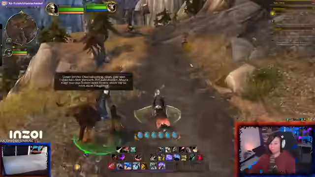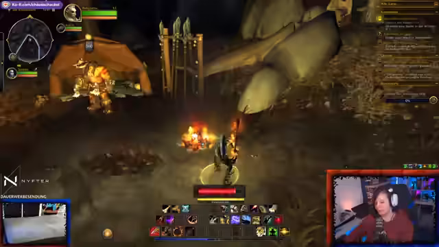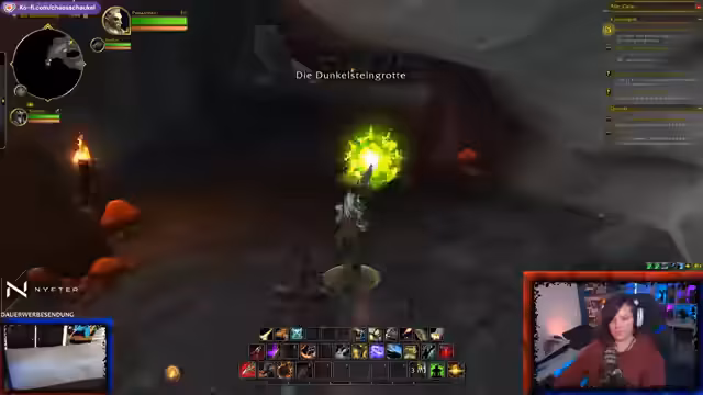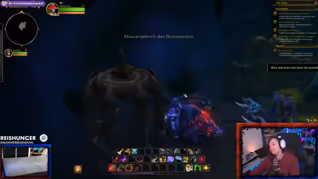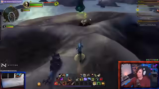 03:07:41Der Streamer erreicht Level 37 und plant, einen Jäger zu leveln, monatelang nicht gemacht. Er findet einen Dungeon-Eingang mit einem Ruhestein und merkt, dass der Dunkelmond-Jahrmarkt noch läuft (bis 11.10) mit Schlotternächten. Beim Flugmeister zu Donnertotem und im Bazaar trifft er Geistwandler Ebenhorn. Quests werden abgegeben, aber Probleme mit Quest-Updates und Teleportationen entstehen. Der Streamer entscheidet, die Dungeon-Queue zu nutzen, um mehrere Gebiete durchzuspielen, und sucht nach Tanks und Heilern über seinen Battle Tag Chaos.