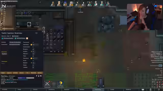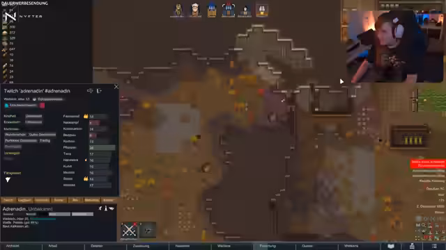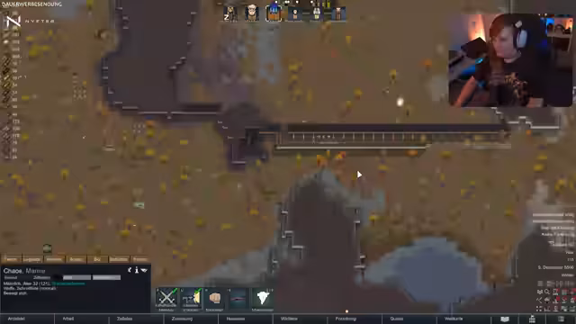 03:04:03Der Streamer zeigt eine effiziente Aufteilung der Tätigkeiten unter den Kolonisten. Winnie kocht und ist Bergarbeiter, Andrea kloppt Steine, die Kinder bauen und Chaos forscht, um das Stromnetz zu verbessern. Der Bau von Stützsäulen wird erwogen, um Deckeneinstürze in großen Räumen zu verhindern. Langfristige Pläne wie der Bau einer Schule für Kinder und die stärkere Verkuppelung der Kolonisten werden erwähnt. Die Stärken der selbstgebauten Rassen werden erneut betont, insbesondere der Bergarbeiter Winnie, der einen hohen Bergbau-Skill besitzt.