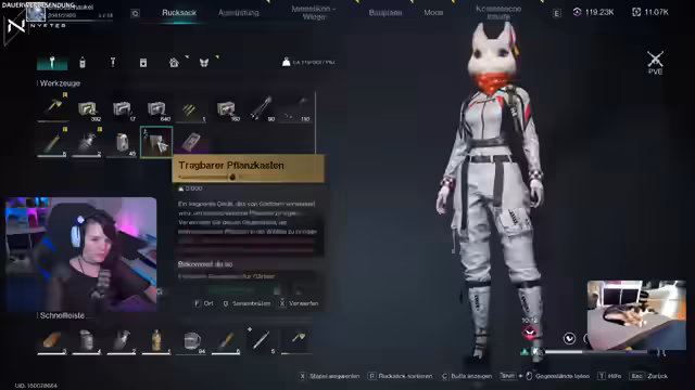 01:07:49Der Streamer erkundet das Spiel und beginnt, seine Basis zu bauen. Er testet die neue Beastmaster-Klasse, wobei er Schwierigkeiten hat, das Wildschwein zu verstehen, das außerhalb der Base stehen bleibt und nicht gefüttert werden kann. Stattdessen entscheidet er sich für den Gärtner, was ihm die Möglichkeit gibt, Samen aus gesammelten Ressourcen wie Blaubeeren zu erzeugen, um diese vor dem Verderb zu schützen und sie später anzupflanzen. Die ersten Schritte im Leveln, Looten und dem Bau einer Base stehen im Fokus der anfänglichen Spielaktivitäten.