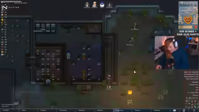 01:51:45Ein zentrales strategisches Element im Stream ist das Einrichten von Zonen. Der Streamer erklärt, dass Zonen die Kolonisten gezielt steuern können, zum Beispiel während eines Angriffs, um sie in sichere Bereiche zu leiten. Diese Funktion ist auch für Haustiere oder schwangere Kolonisten nützlich. Die erste ernste Bedrohung taucht auf: ein Seuchenvergifter. Der Streamer plant, den Angreifer zu eliminieren, da er keine Zeit hat, die spezifischen Drogen zur Behandlung zu erforschen, die dieser benötigt. Während des Kampfes wird auch der neue Kolonist Aiden vorgestellt, ein zehnjähriges Mädchen mit den Fächern Nahkampf, Kochen und Medizin.