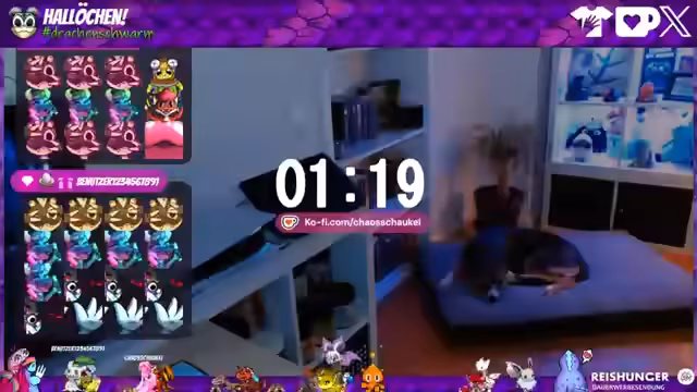 02:25:31Eine längere Auseinandersetzung mit dem Community-Maskottchen 'Alphi' wird gestartet. Das grüne Stofftier ist auf einer Deutschlandreise und besucht seit über einem Jahr die Zuschauer. Die Teilnehmer nehmen es mit auf Ausflüge und schicken es weiter. Diese Aktion wird als sehr knuffig und positiv wahrgenommen. Das Event hat sogar eigene Emotes inspiriert, trotz des Wunsches des Streamers, andere Motive zu fördern.